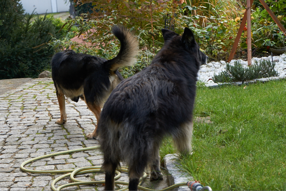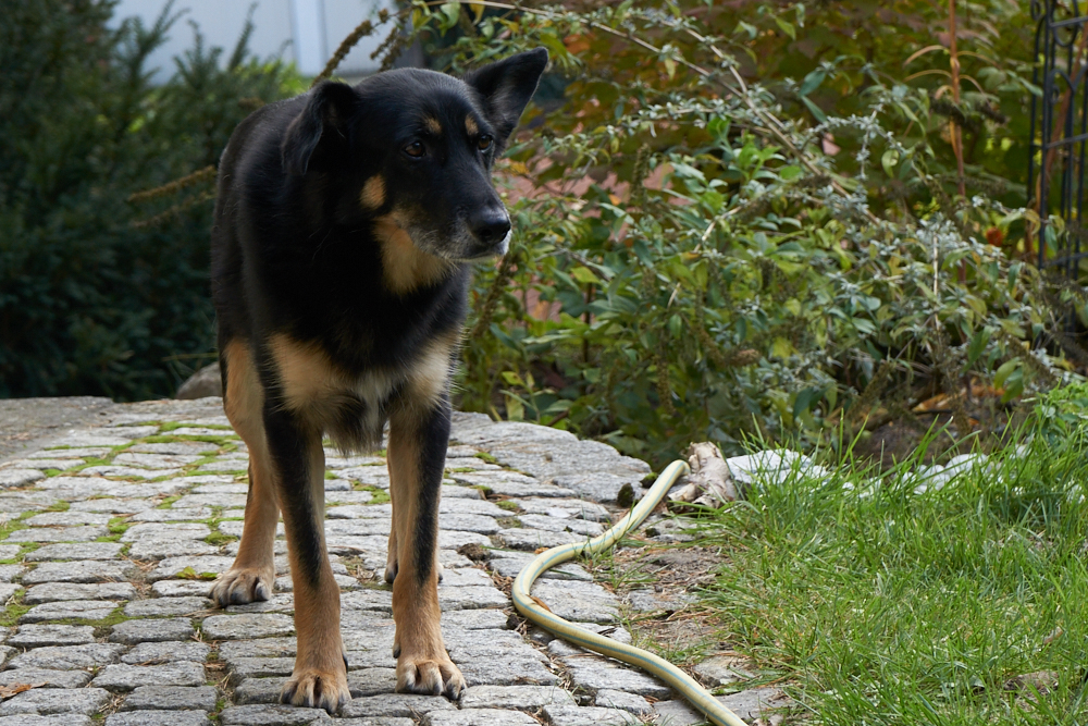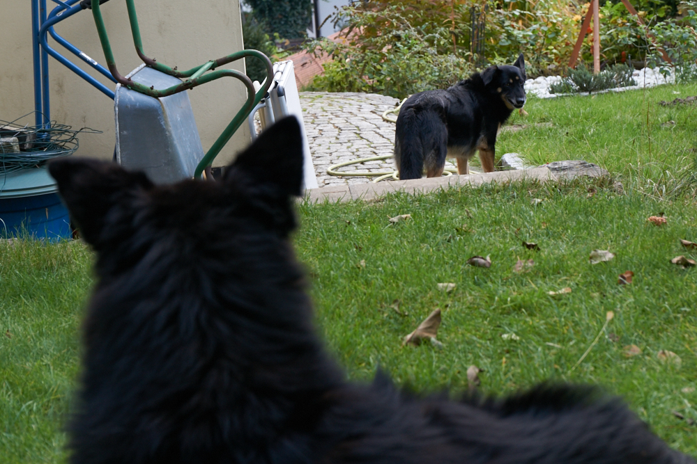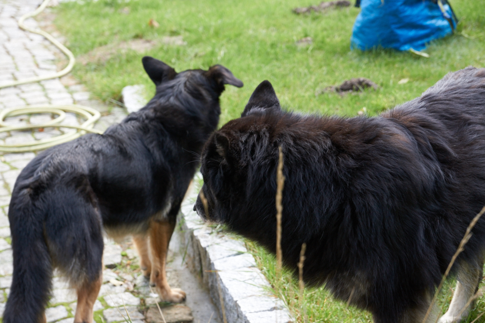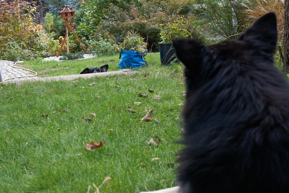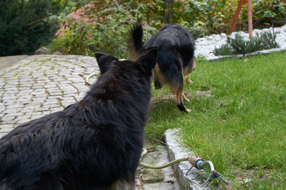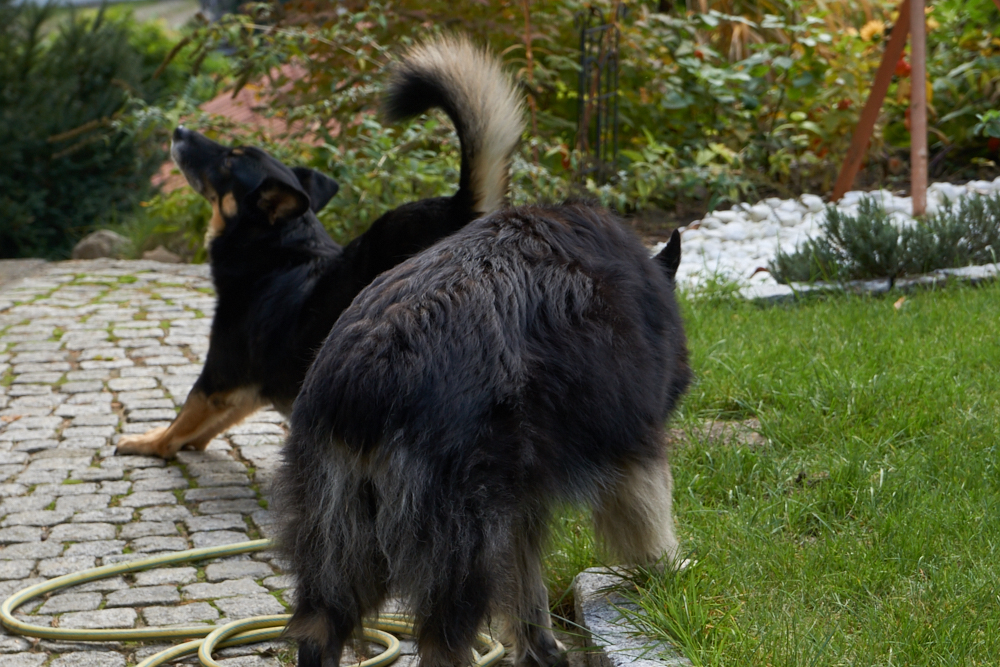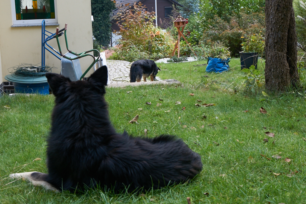 Da Hana und Klempo nicht ständig beieinander waren, wirkten sie heute viel entspannter. Als ich mit der Kamera in den Garten ging, um Hana zu fotografieren, folgte mir Klempo und so hatte ich die Gelegenheit, beide im Garten zu fotografieren.