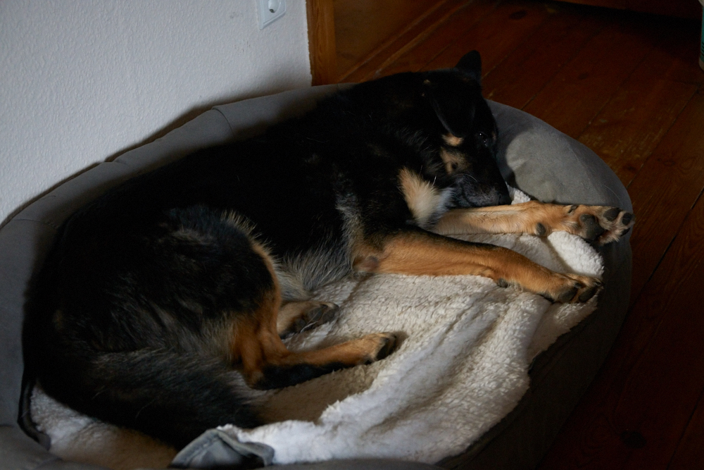 Aufgrund der Erfahrungen des gestrigen Tages gingen wir den heutigen Tag ruhiger an. Am frühen Vormittag die erste Gassi-Runde zum Bäcker. Hana und Klempo hatten es nicht eilig, denn die letzte Gassi-Runde war gegen 4:00 Uhr. Wir sind mal wieder auf der Couch eingeschlafen und die beiden haben uns schlafen lassen.