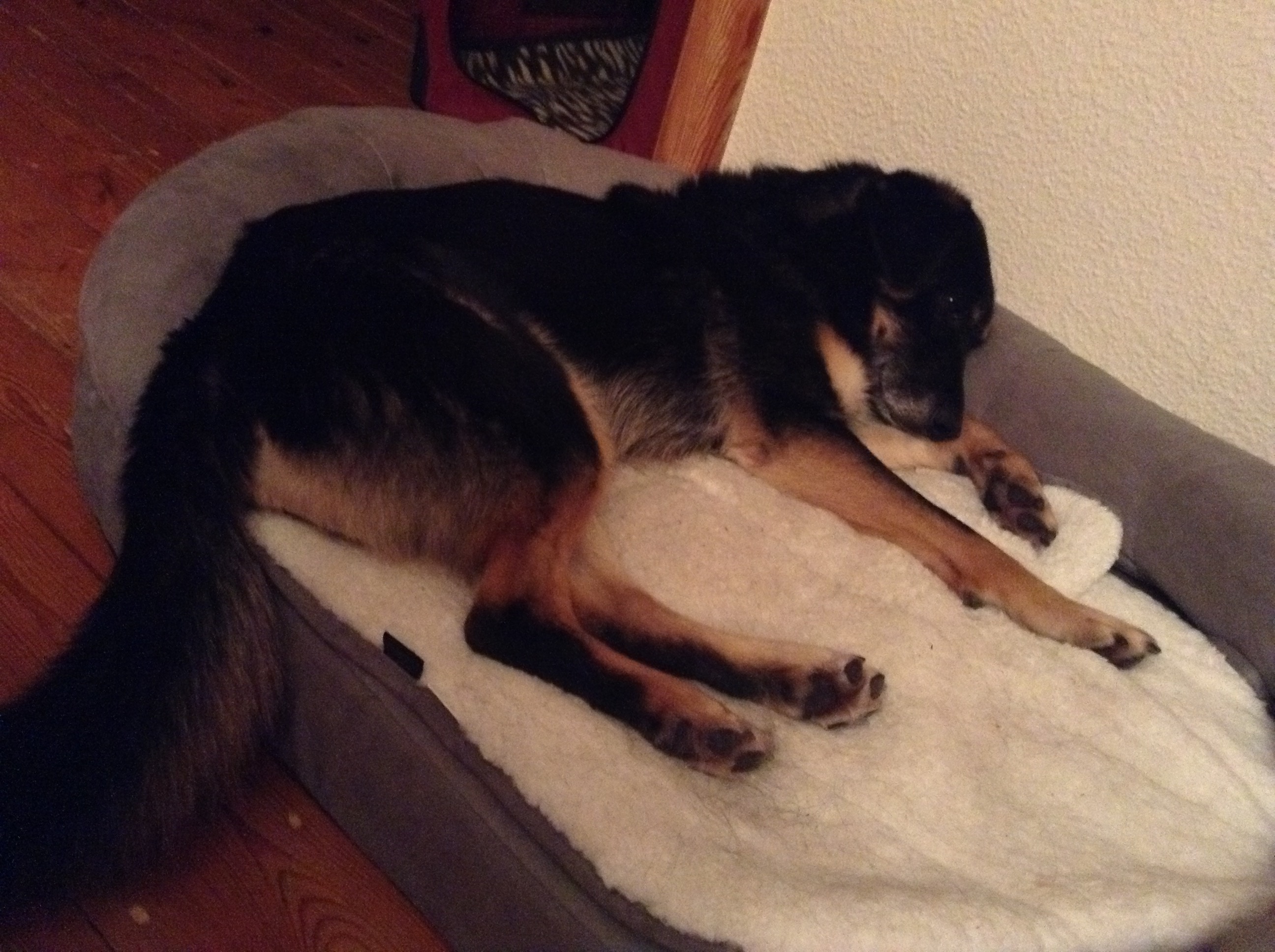 Klempo hätte mit Iris wunderbar im Garten spielen können, doch war er so fertig, dass er lieber im Haus und in seinem Bett blieb.