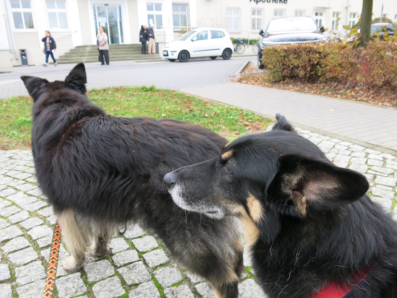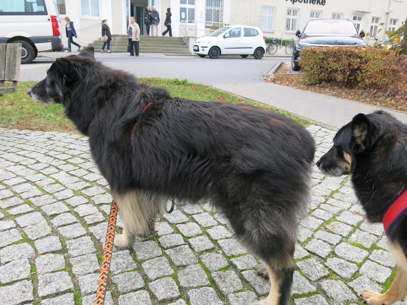 Iris, Hana und Klempo mussten vor dem Rathaus warten, bis ich alle Formalitäten erledigt hatte. Klempo anmelden und polizeiliches Führungszeugnis beantragen (notwenig in Wildau, da Klempo eine Schulterhöhe von 55 cm hat).