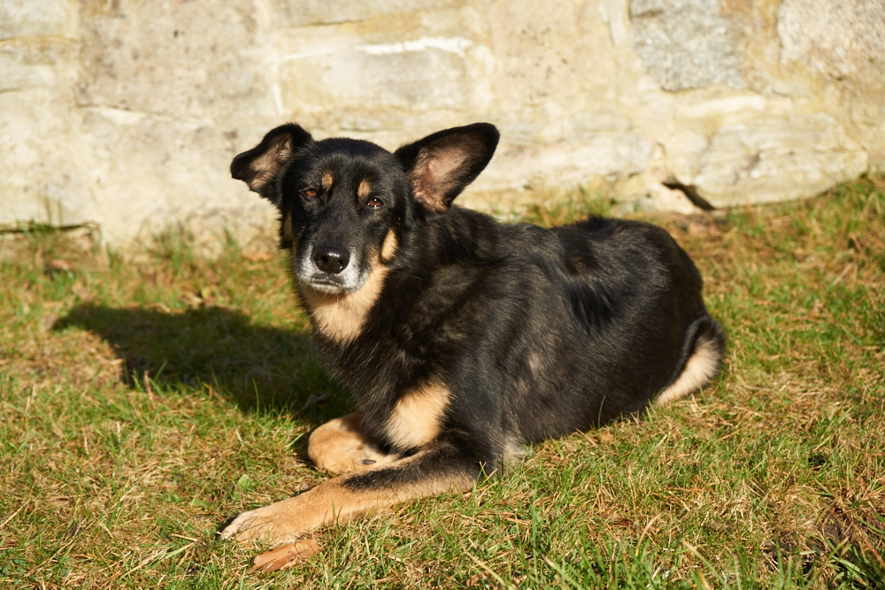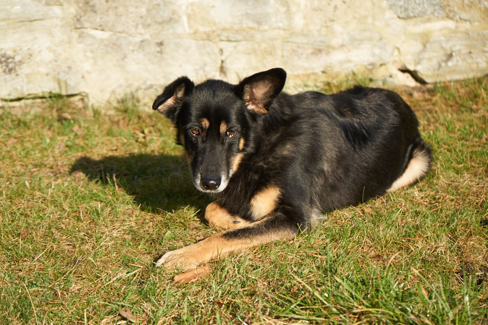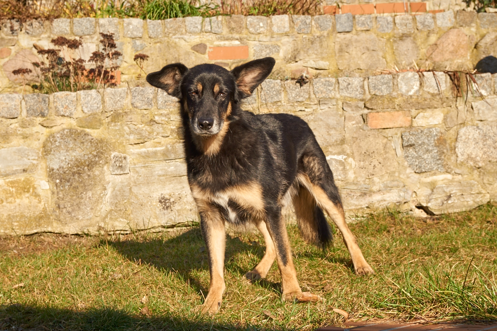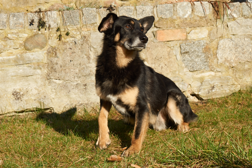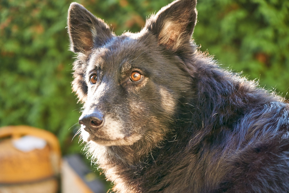 Hana (t), Klempo (t), Fee (vormals Mia) und Rocky, vier Hunde aus dem Tierschutz