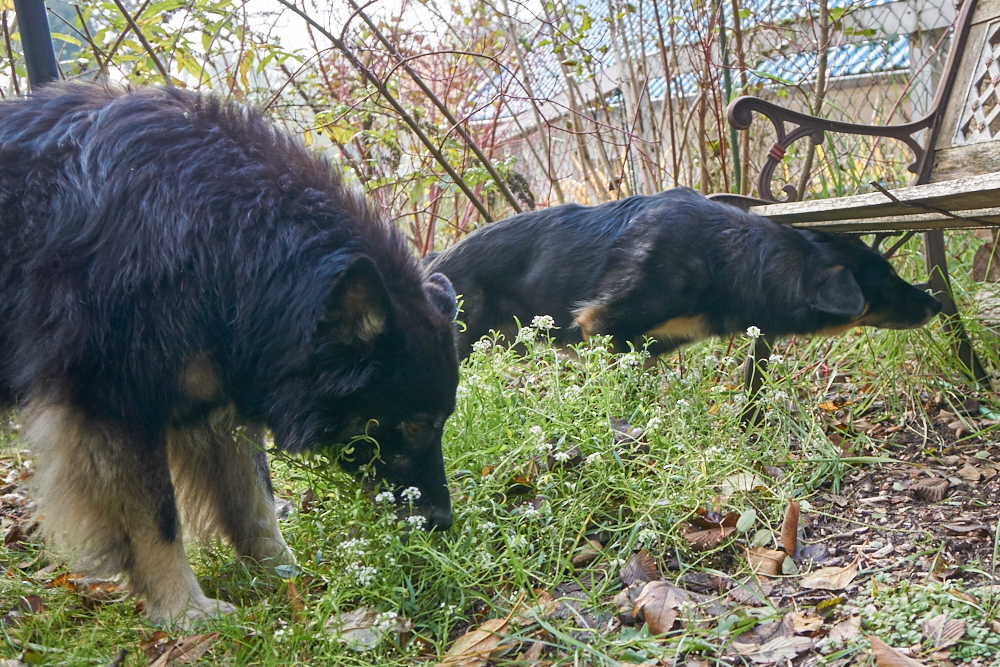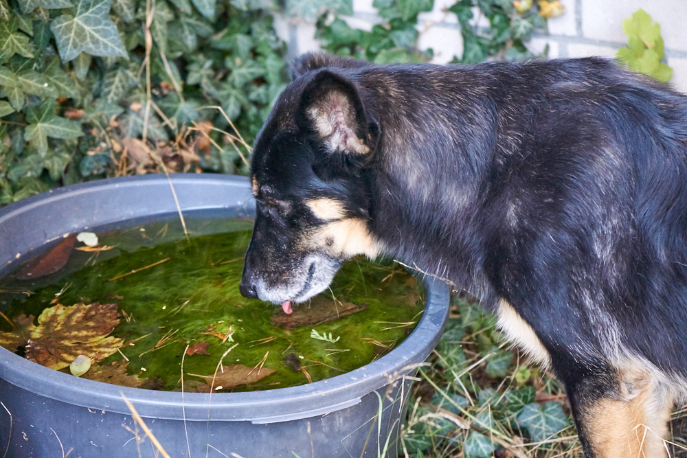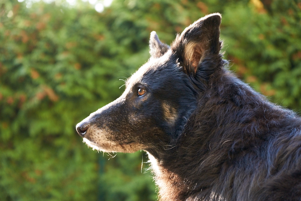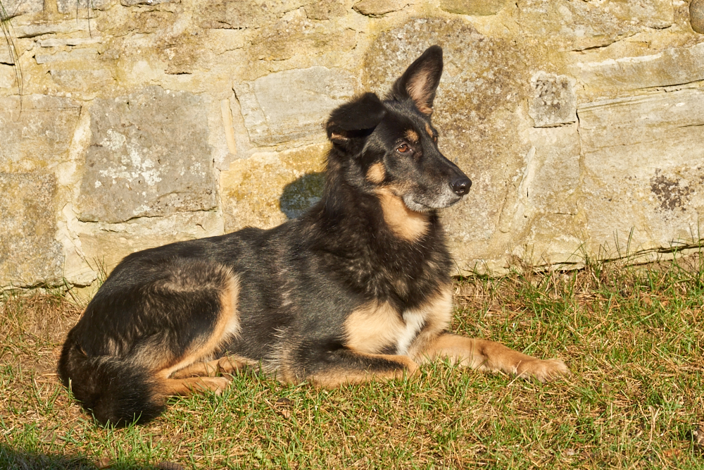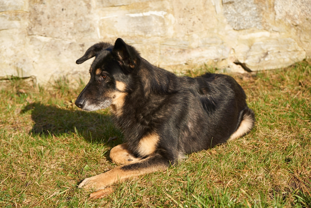 Hana (t), Klempo (t), Fee (vormals Mia) und Rocky, vier Hunde aus dem Tierschutz