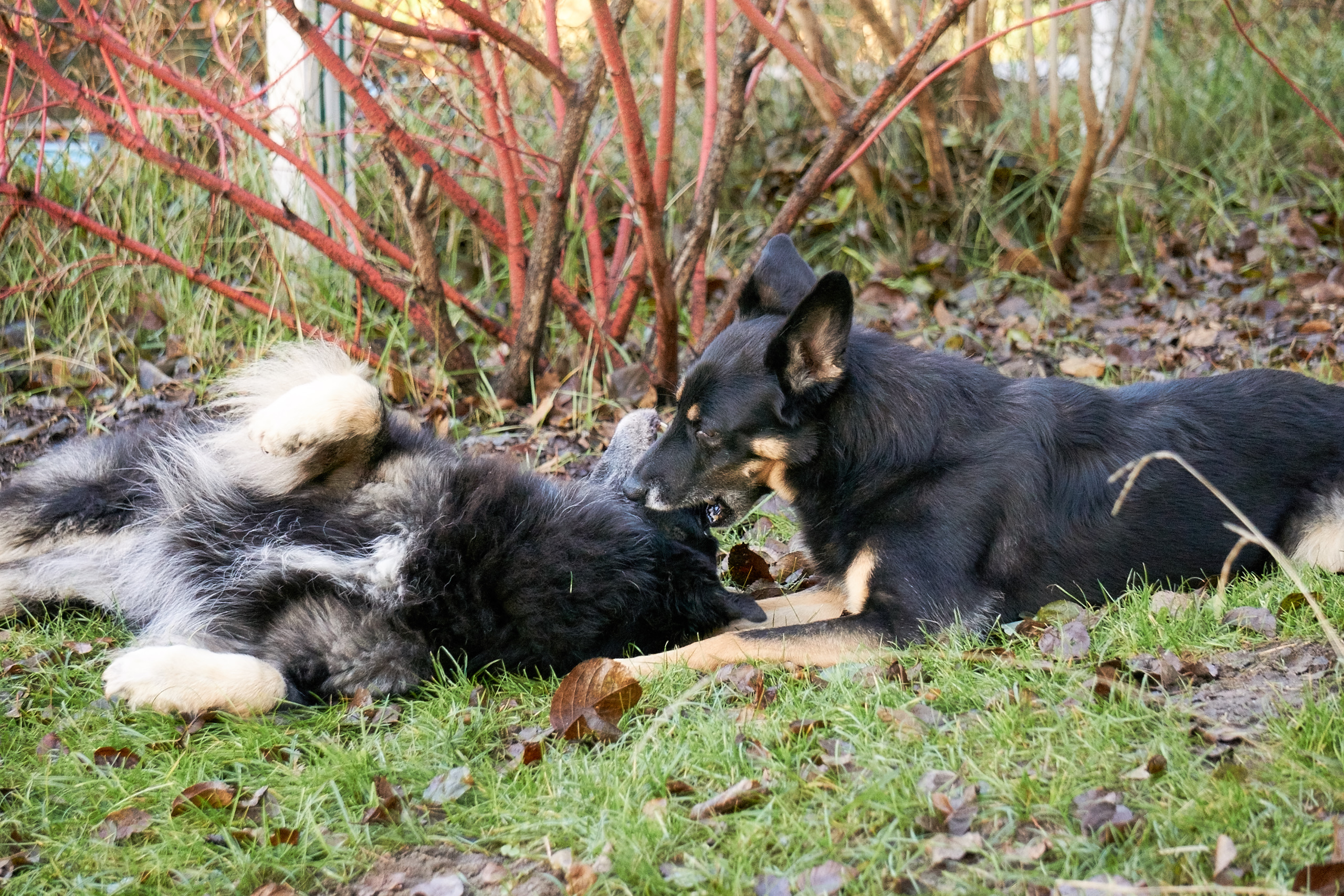 Hana (t), Klempo (t), Fee (vormals Mia) und Rocky, vier Hunde aus dem Tierschutz