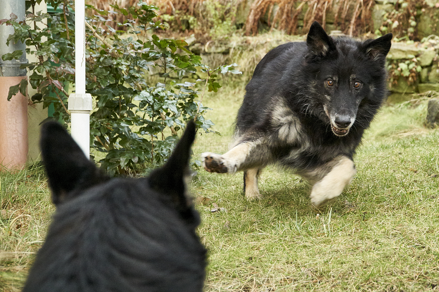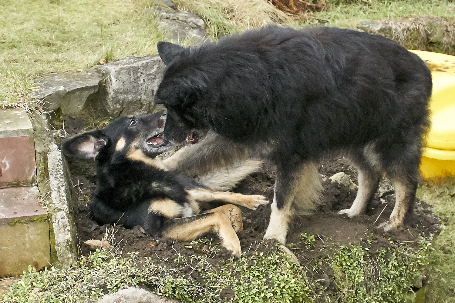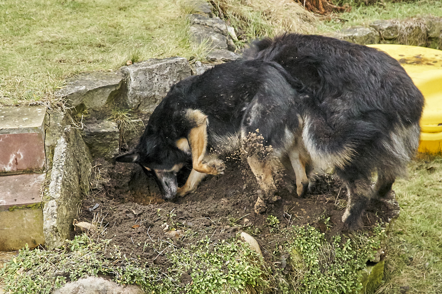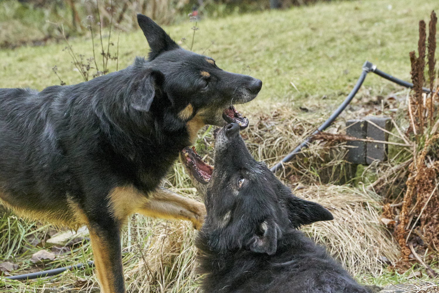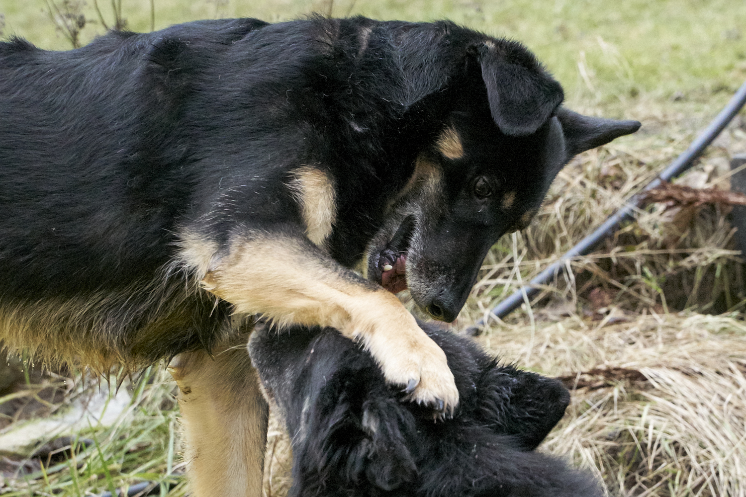 Hana (t), Klempo (t), Fee (vormals Mia) und Rocky, vier Hunde aus dem Tierschutz