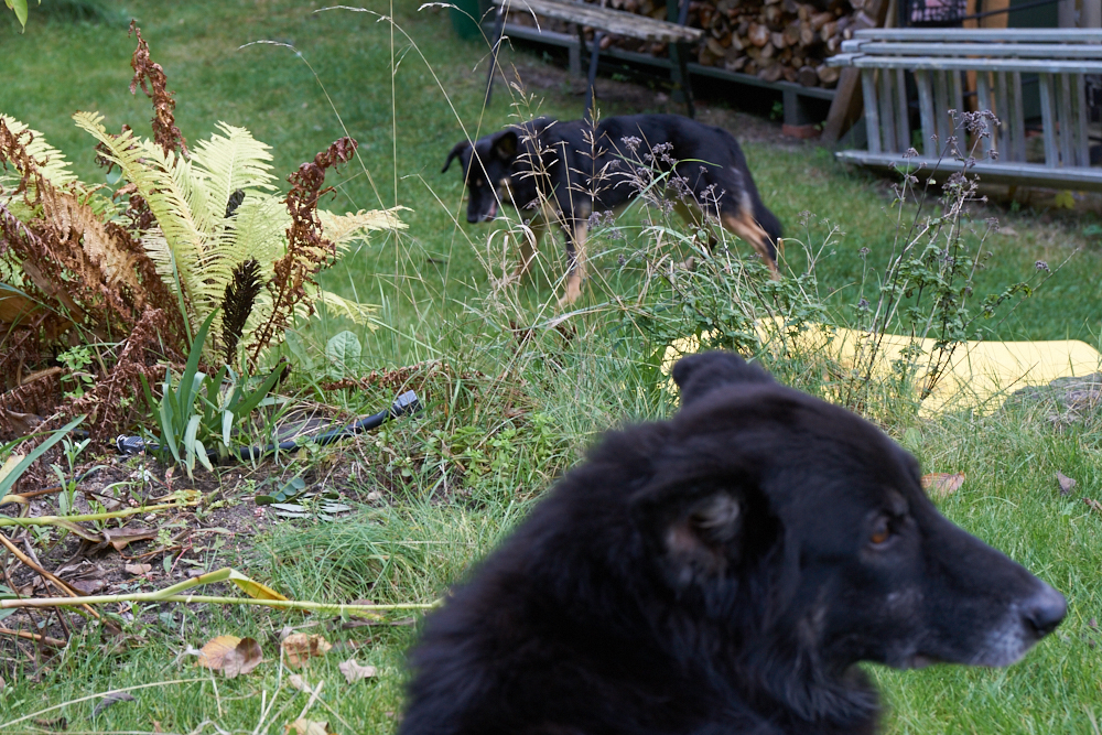 Hana (t), Klempo (t), Fee (vormals Mia) und Rocky, vier Hunde aus dem Tierschutz