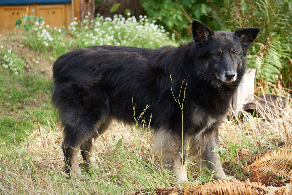 Hana (t), Klempo (t), Fee (vormals Mia) und Rocky, vier Hunde aus dem Tierschutz