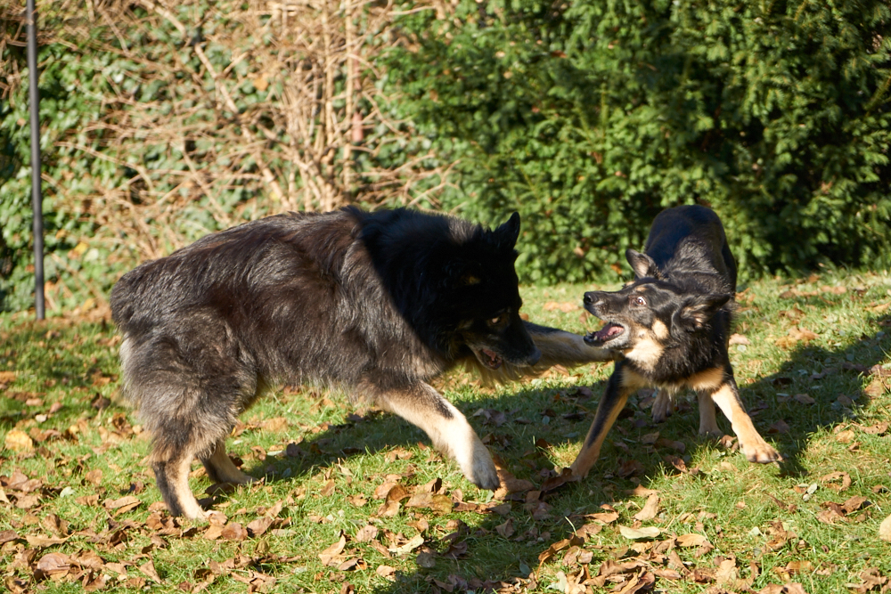 Hana (t), Klempo (t), Fee (vormals Mia) und Rocky, vier Hunde aus dem Tierschutz