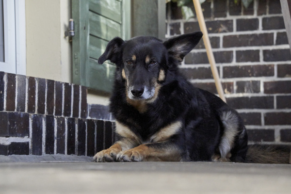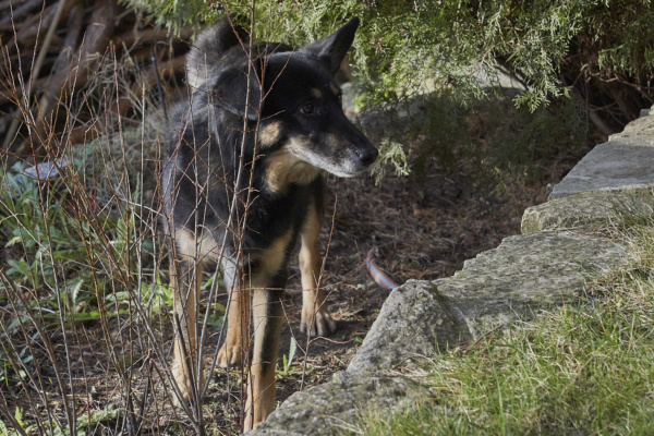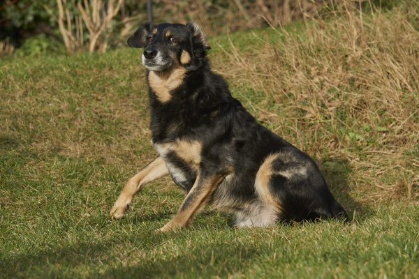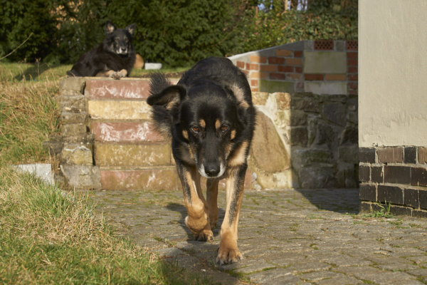Hana (t), Klempo (t), Fee (vormals Mia) und Rocky, vier Hunde aus dem Tierschutz