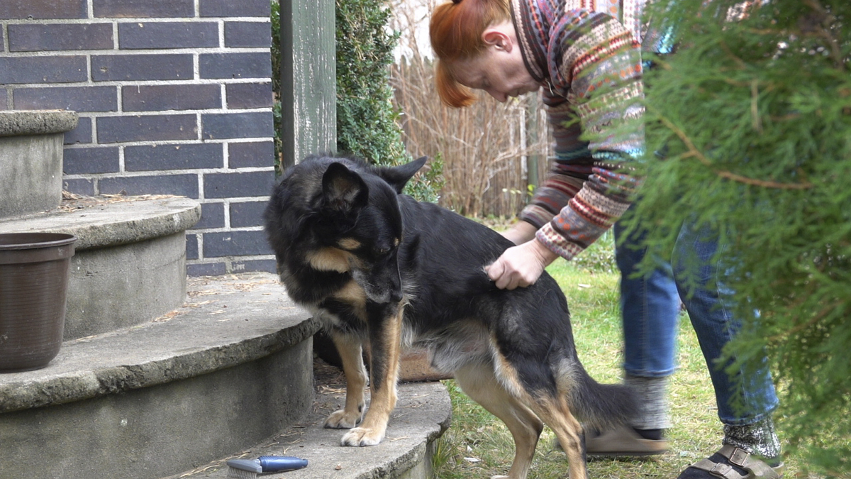 Hana (t), Klempo (t), Fee (vormals Mia) und Rocky, vier Hunde aus dem Tierschutz