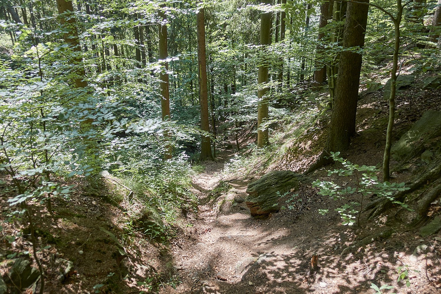 Da wir am Vortag nicht durch die Wolfsschlucht wandern durften, Iris aber hohe und unbewaldete Felsen sehen wollte, entschlossen wir uns durch die Wolkensteiner Schweiz zu wandern. Diese war von unserem Feriendomizil gut zu erreichen. Iris versprach sich auch alpines Feeling.