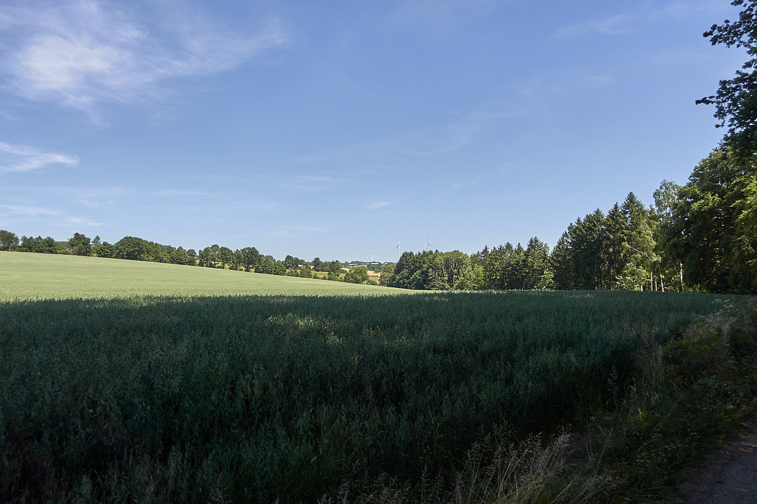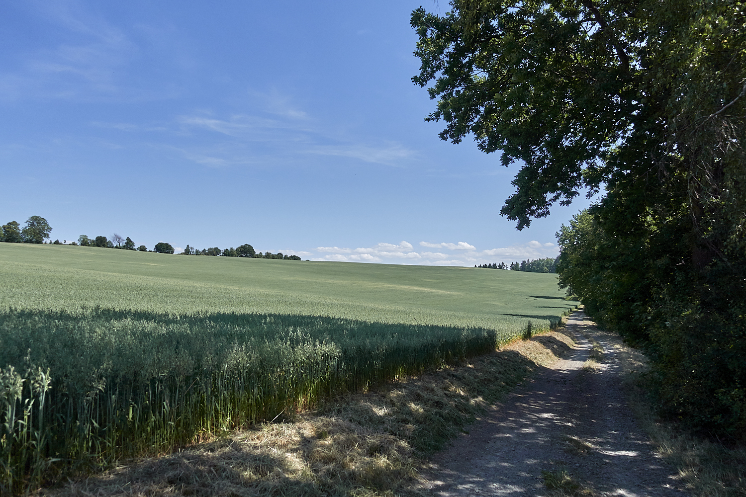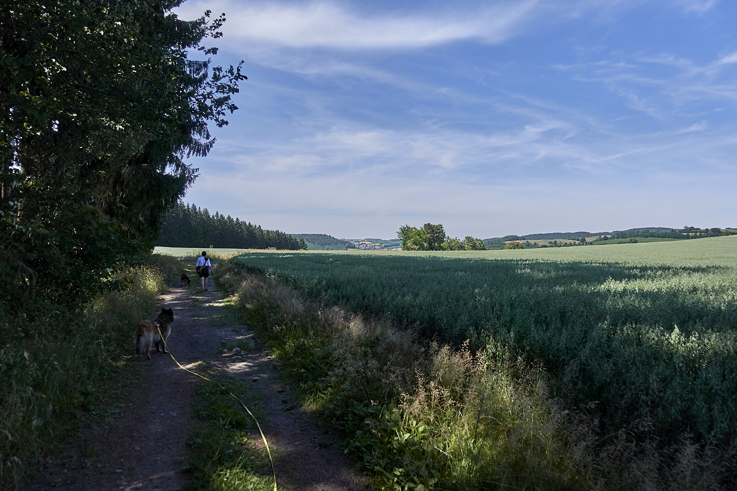 Wieder hinauf durch den Wald und dann zwischen Feldern zurück nach Grünau.