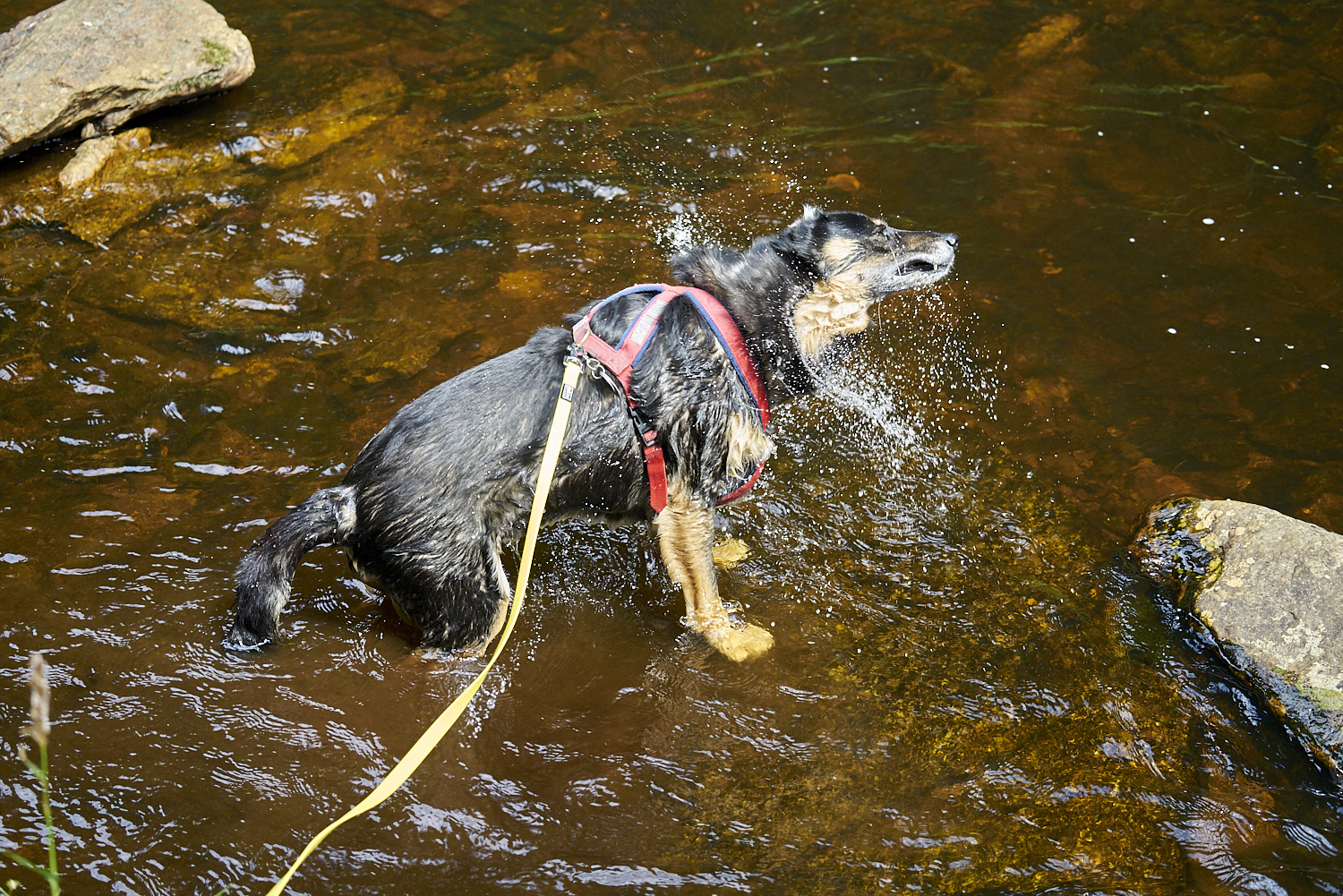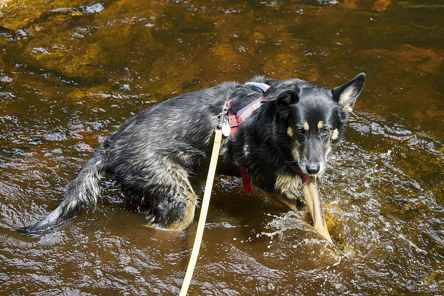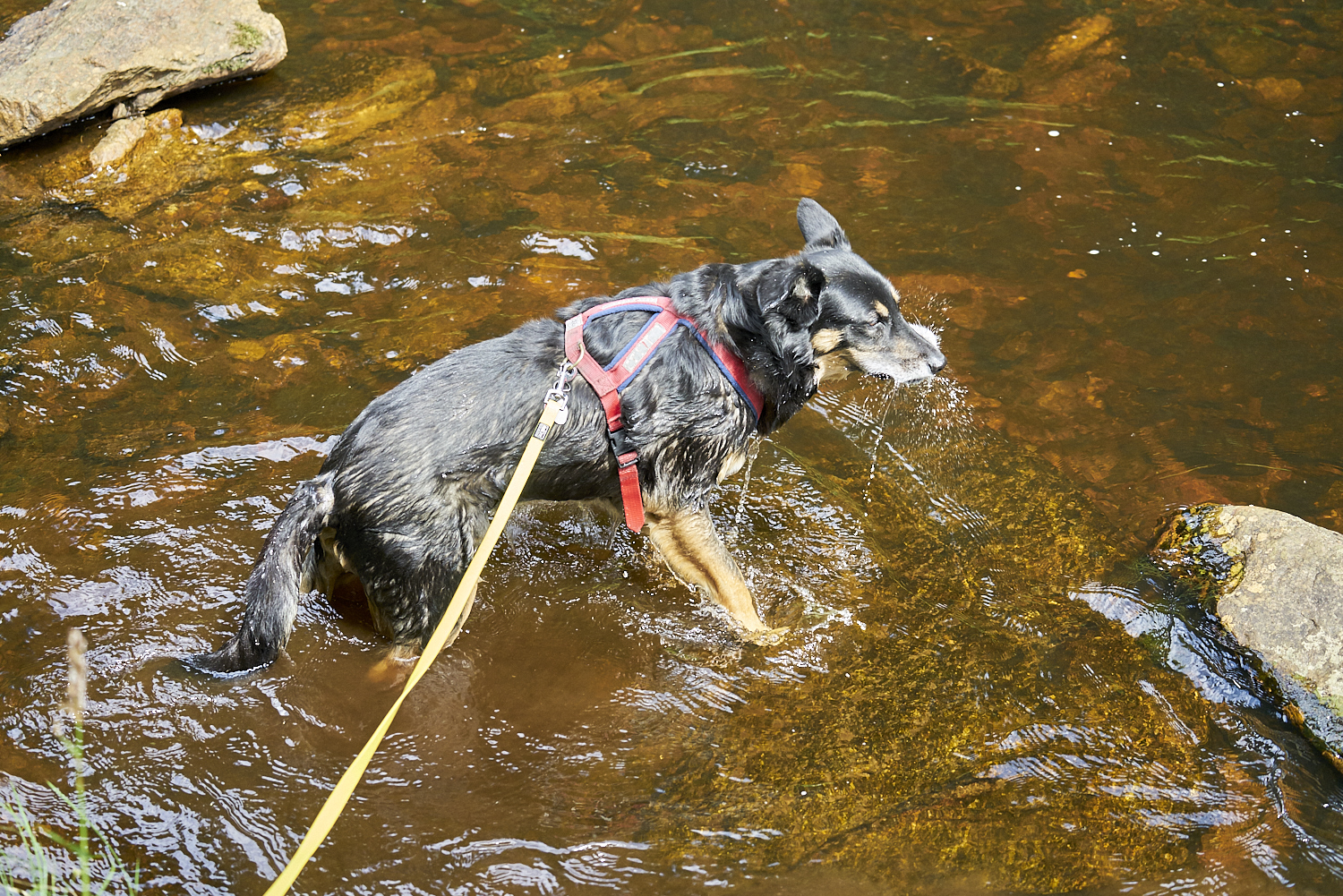 Es ging den gesamten Weg sanft bergauf. Klempo fand immer wieder eine Stelle, an der er sich ins Wasser begeben konnte.