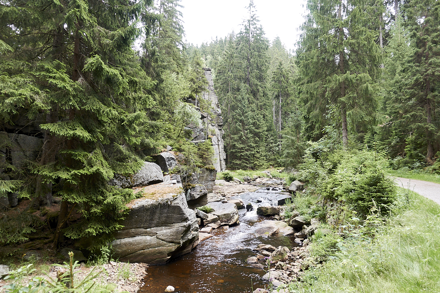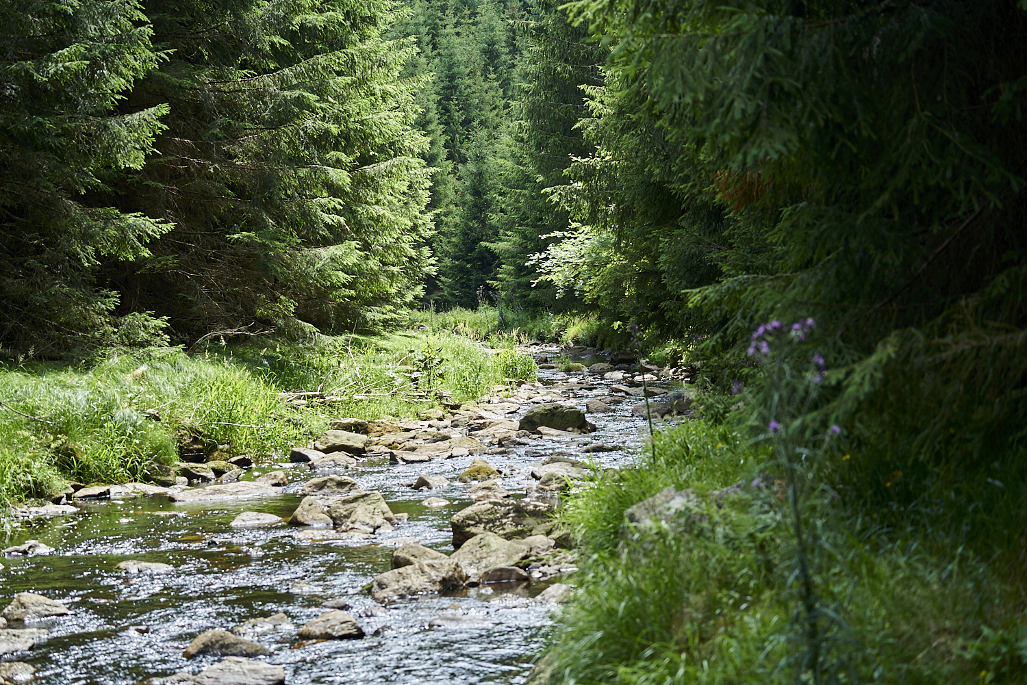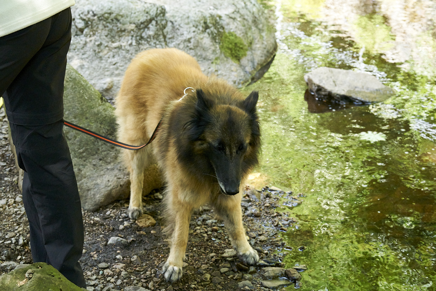 Es ging den gesamten Weg sanft bergauf. Klempo fand immer wieder eine Stelle, an der er sich ins Wasser begeben konnte.