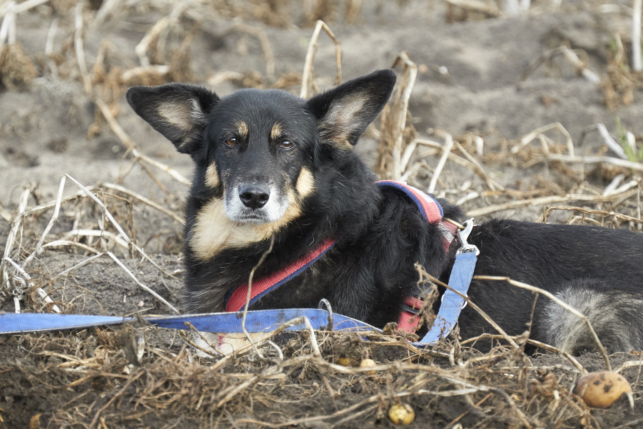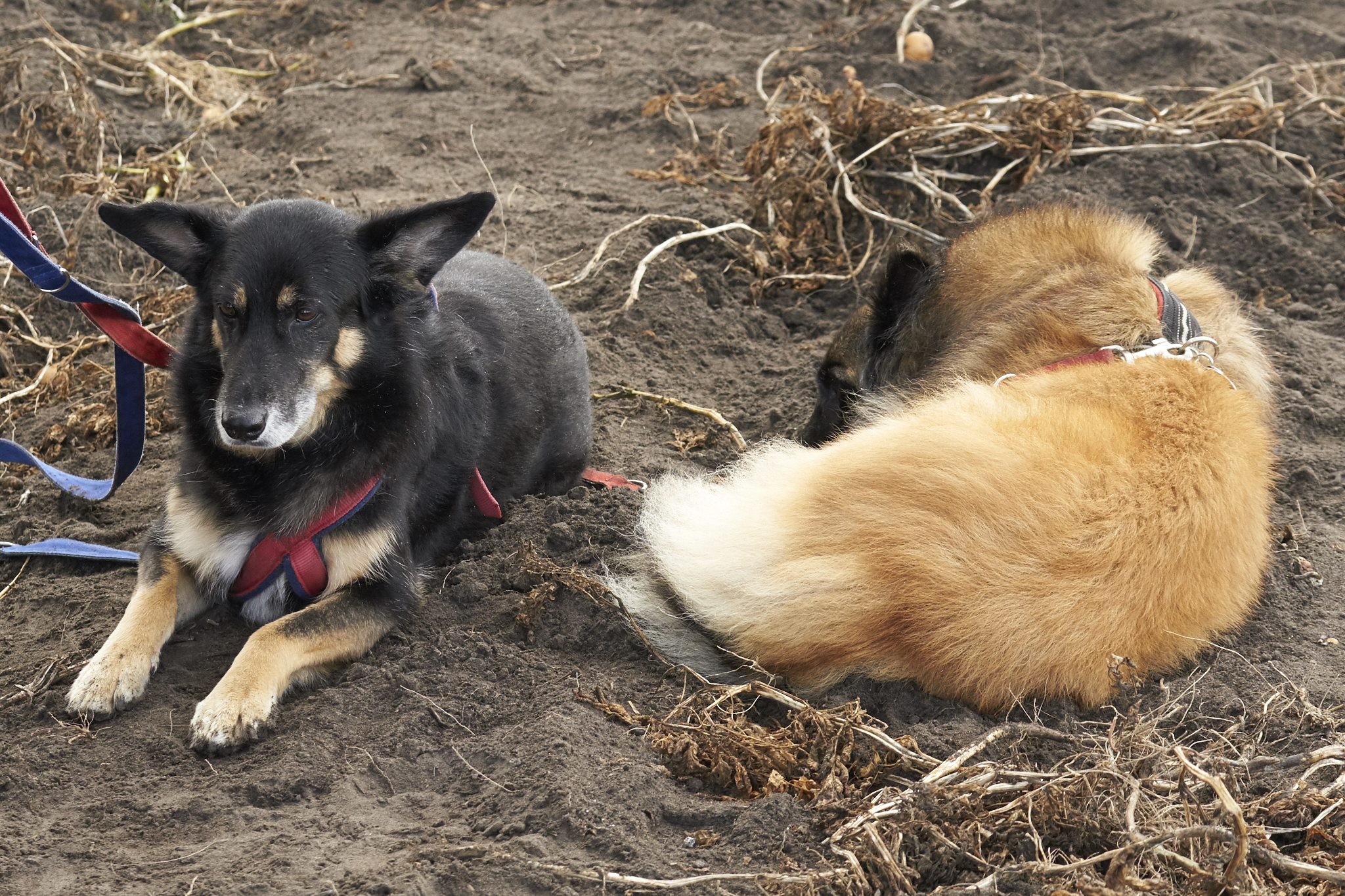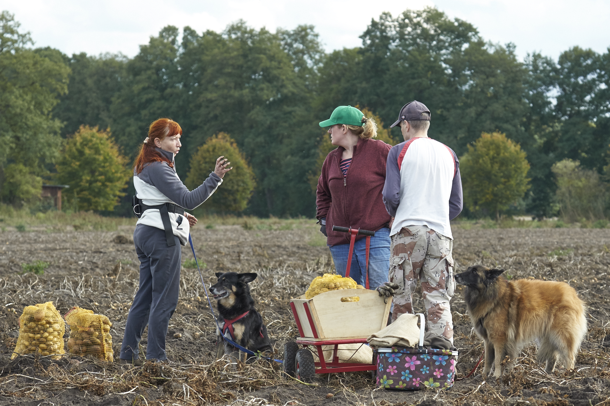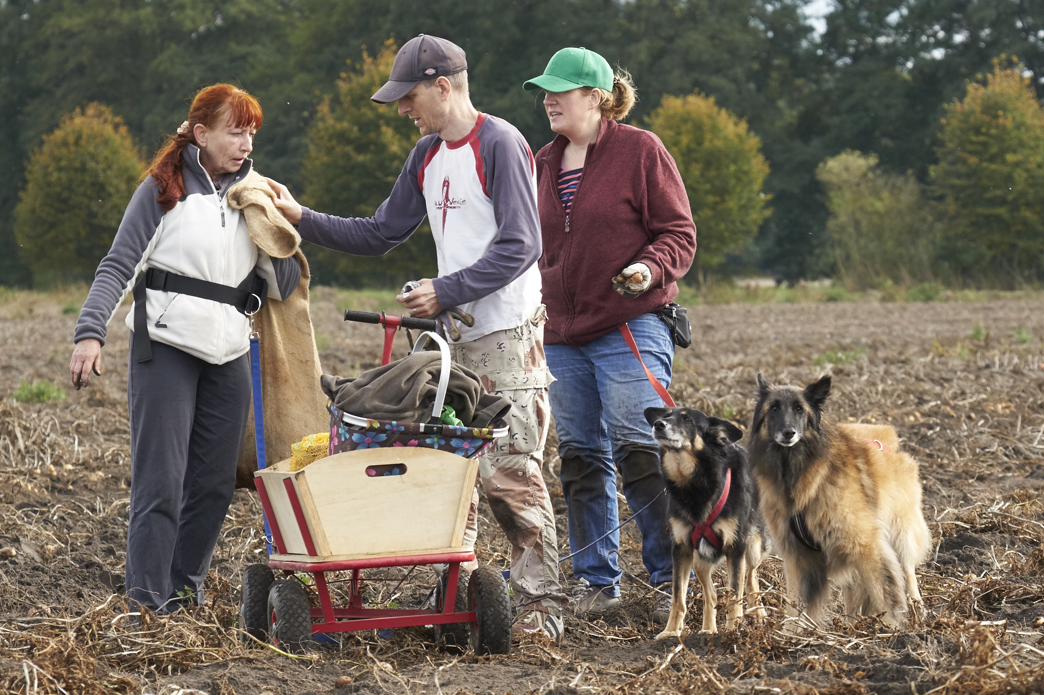 Hana (t), Klempo (t), Fee (vormals Mia) und Rocky, vier Hunde aus dem Tierschutz
