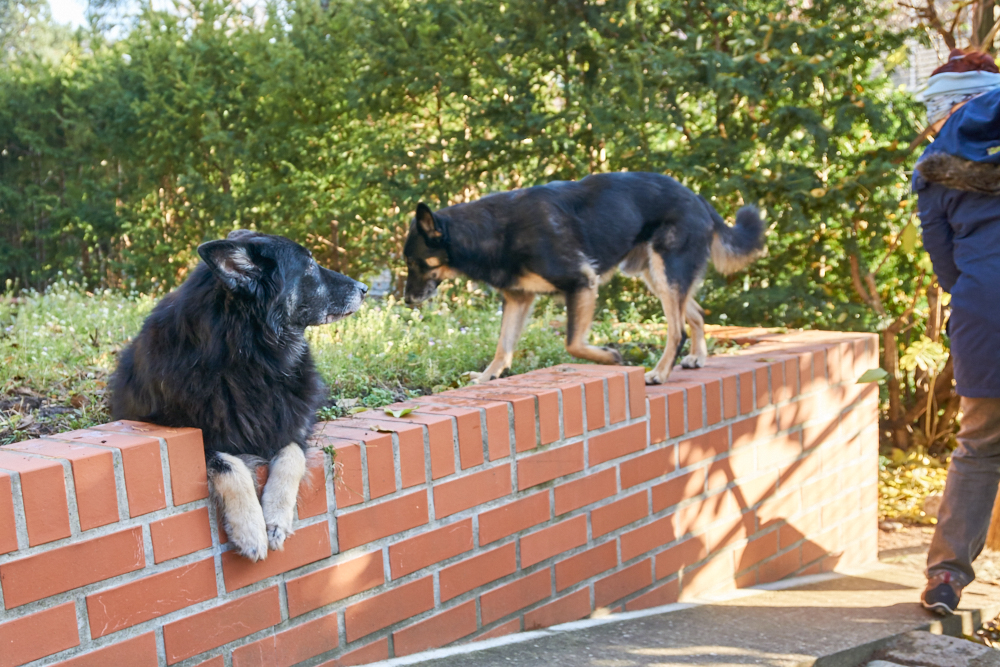 Hana (t), Klempo (t), Fee (vormals Mia) und Rocky, vier Hunde aus dem Tierschutz